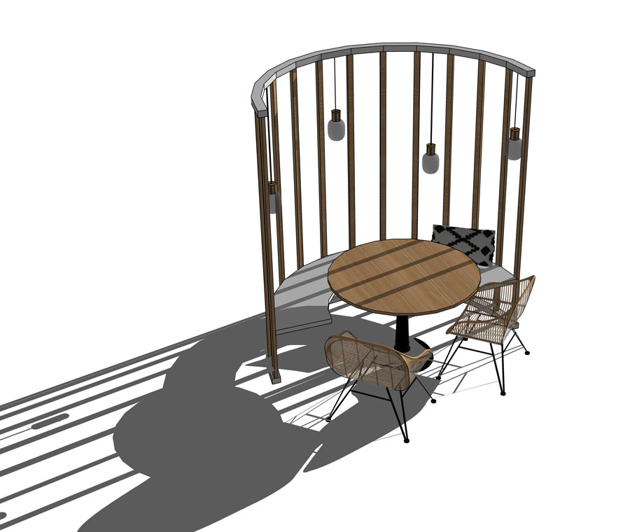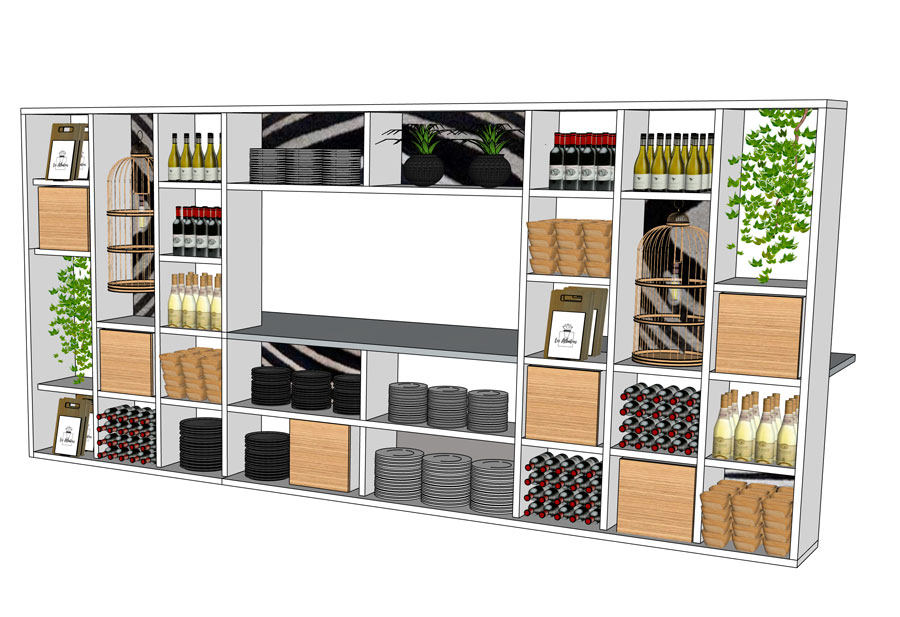 ANALYSE & BESOINS – Dans ce projet il fallait dessiner 3 espaces bien distincts : le bar, le restaurant et l’espace yoga avec une identité visuelle bien marquée. Un travail d’agencement et de décoration sur mesure .
